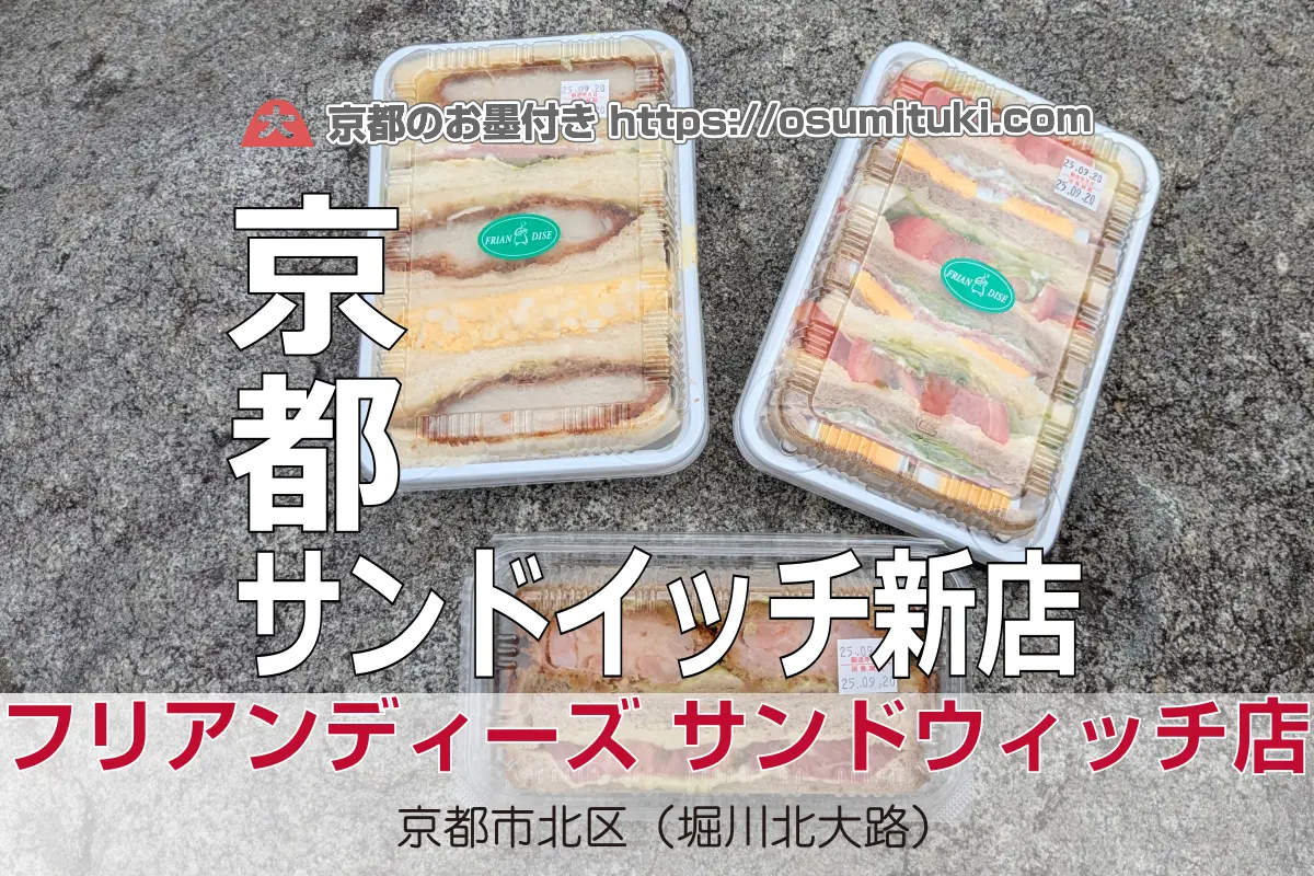 京都で飲食新店を探して紹介するブログ「京都のお墨付き!」で今回記事にするお店は京都府京都市北区(堀川北大路)で2025年9月8日に新店オープン(開業)したパン屋「フリアンディーズ サンドウィッチ店」です。