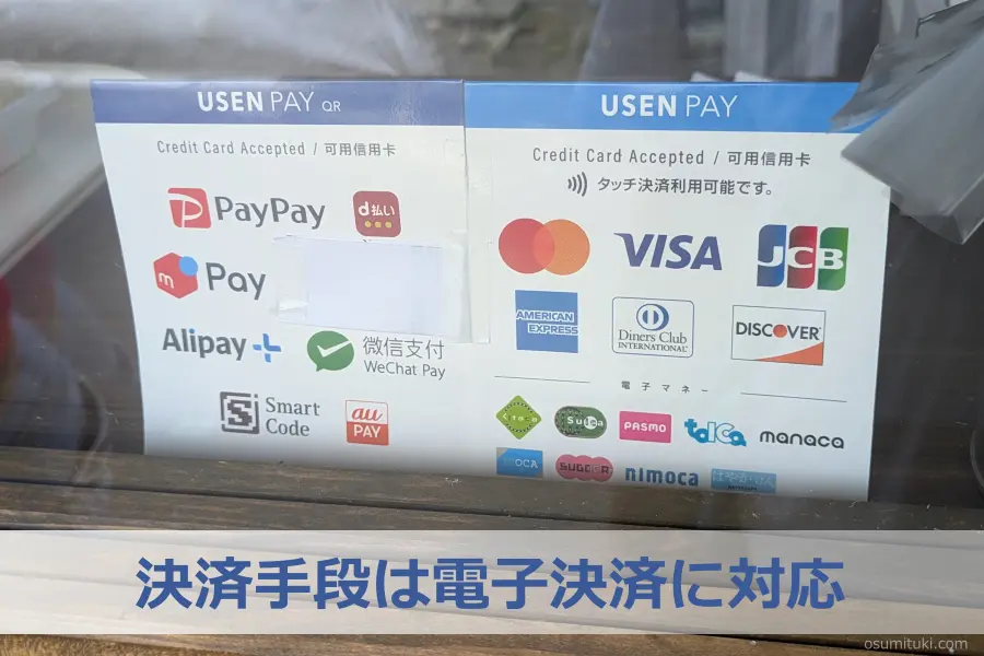 支払い方法は「現金・クレジットカード・交通系ICカード・QR決済」が利用できます。