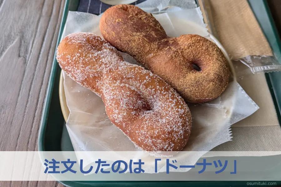 注文したのは「ドーナツ」でシュガーとシナモンでお願いしました。(店頭ポスターによれば)プレーンは粉砂糖でシューガーは砂糖がかかっているのが違いみたいです。