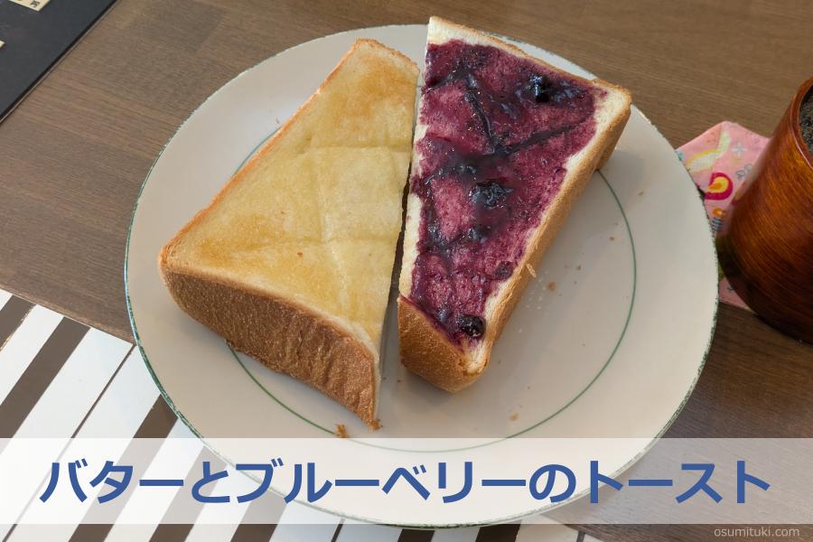 300円でバターとブルーベリーの2つの味を楽しめるふわふわ生地の美味しいトーストでした。