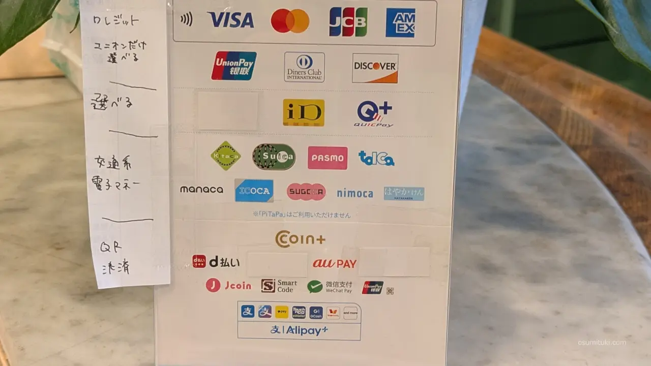支払い方法は「現金・クレジットカード・電子マネー・交通系ICカード・QR決済」が利用できます。