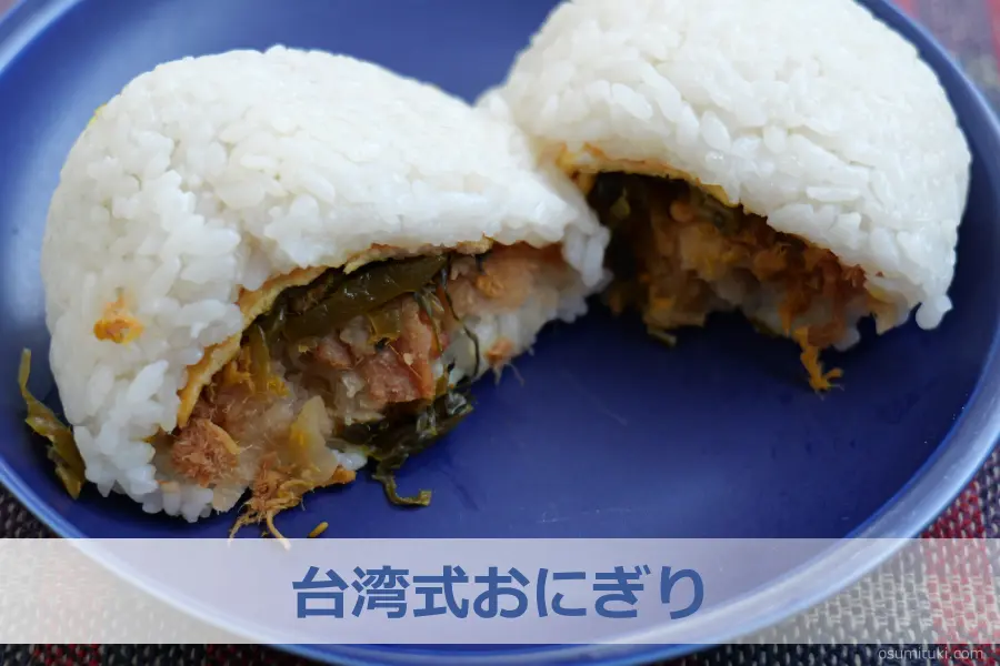 台湾式おにぎりは「飯糰(ファントァン)」という餅米を使った具材たっぷりのおむすびです。具材には「高菜・干し大根・揚げパン・玉子・肉でんぶ」が入っていたり、ツナマヨが入っているものなどもあります。