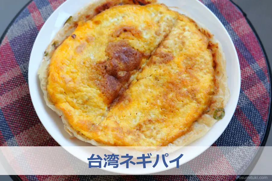 台湾ネギパイは「葱抓餅(ツォンツァピン)」というパリっとした生地に薄く焼いた玉子焼きを重ねたものです。生地にはネギが練り込んであります。台湾式クレープと似ていて、こちらもタレで食べるようになっています。