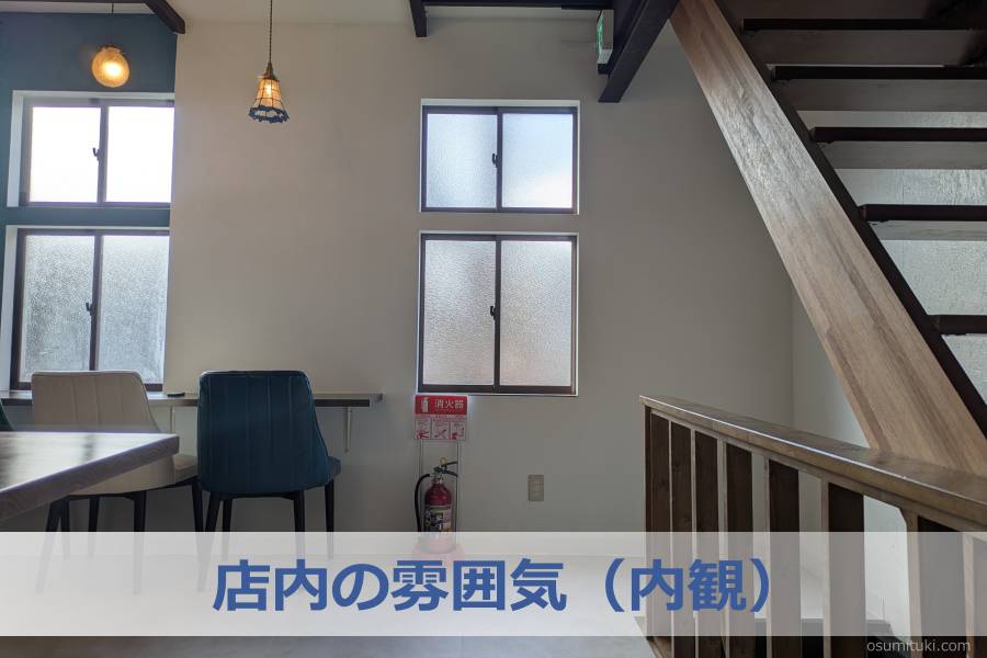 店内は一階と二階に客席があり、一階はカウンター席数席と4名テーブル1卓ほどで半分近くは調理や会計をするスペースです。二階は窓際のカウンター席が3席と2卓のテーブル席がありました。京都では左京区の「哲学の道」あたりでよくあるカフェという感じです。