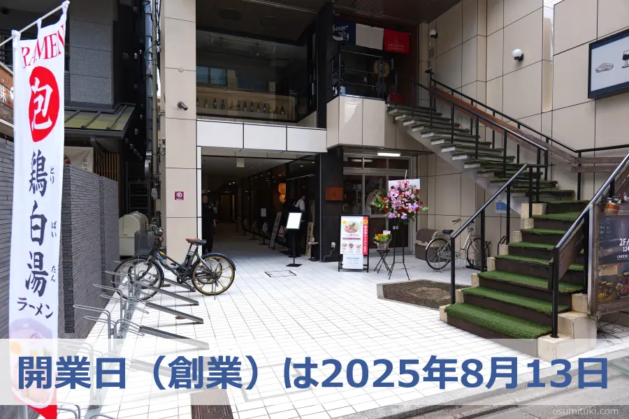 2025年8月13日に開業(創業)したラーメン店「京都 鶏白湯そば純 四条烏丸店」です。