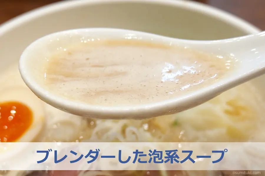 スープは「鶏・豚」がスープベース(出汁)。味付け(タレ)は醤油で辛さ控えめの京都ラーメンらしい味わい。表面はブレンダーして乳化しているので泡でコクが増されているはずです。