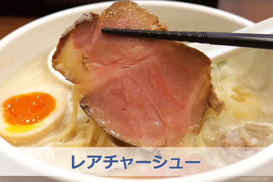 本店と四条烏丸店の大きな違いは、四条烏丸店ではチャーシューが「レアチャーシュー」になっていることと「ワンタン」がトッピングされていることです。