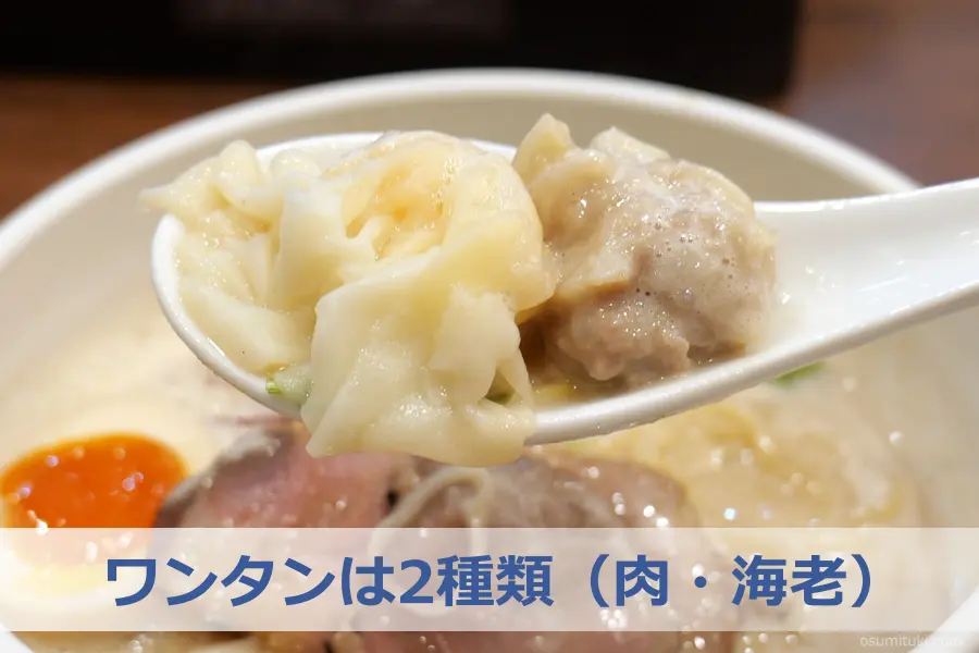 ワンタンは2種類で「肉・海老」のものが入っていました。