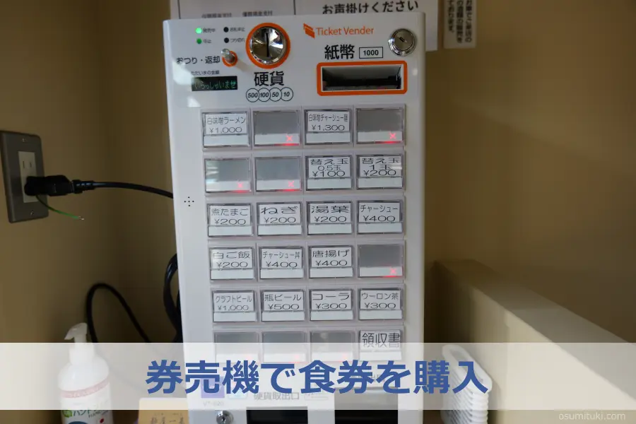 支払い方法は「現金のみ」です(高額紙幣未対応なので1000円札必須)。