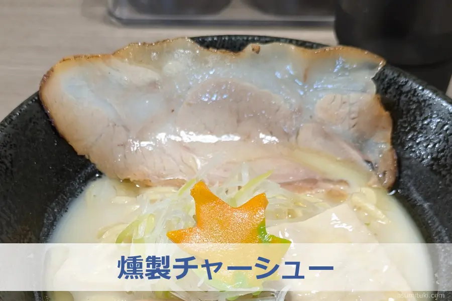 チャーシューの部位は食べてみると「豚肩ロース」だと思います。燻製チャーシューで香りもよく美味しいチャーシューです。