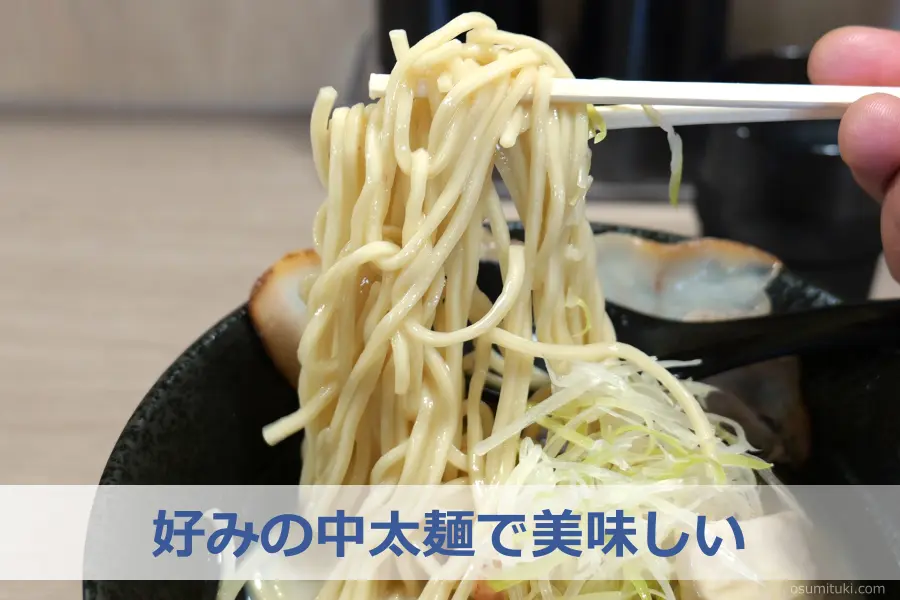 麺もスープによく合っていて、固めの茹で加減なのが京都の人には嬉しいと思います。