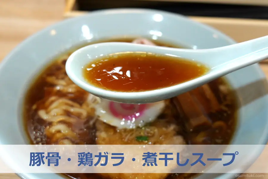 鶏ガラと豚骨に煮干しの清湯スープに香ばしい醤油ダレのラーメンです。自家製で平たい太麺はモチっとコシがある多加水麺になっています。平たく言えば福島県の喜多方ラーメンと言えます。
