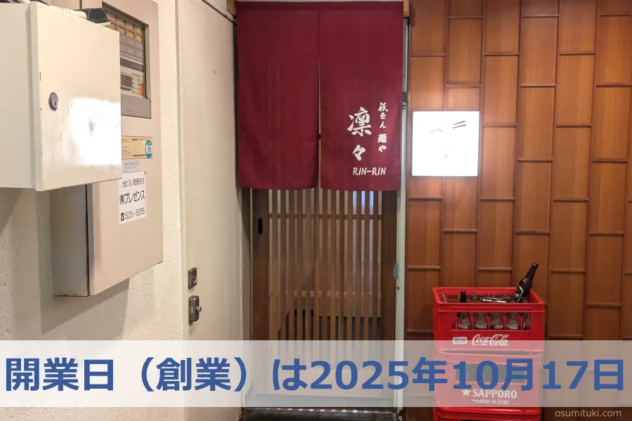 2025年10月17日に開業(創業)したラーメン店「祇をん 麺や 凛々」です。
