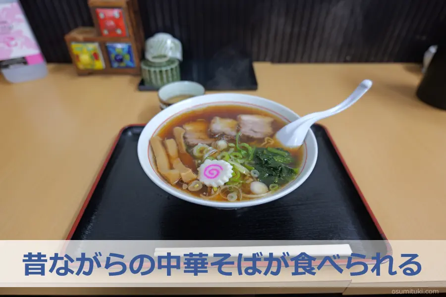 昔ながらの中華そばで関東以北の味わいとトッピングが京都では珍しい。