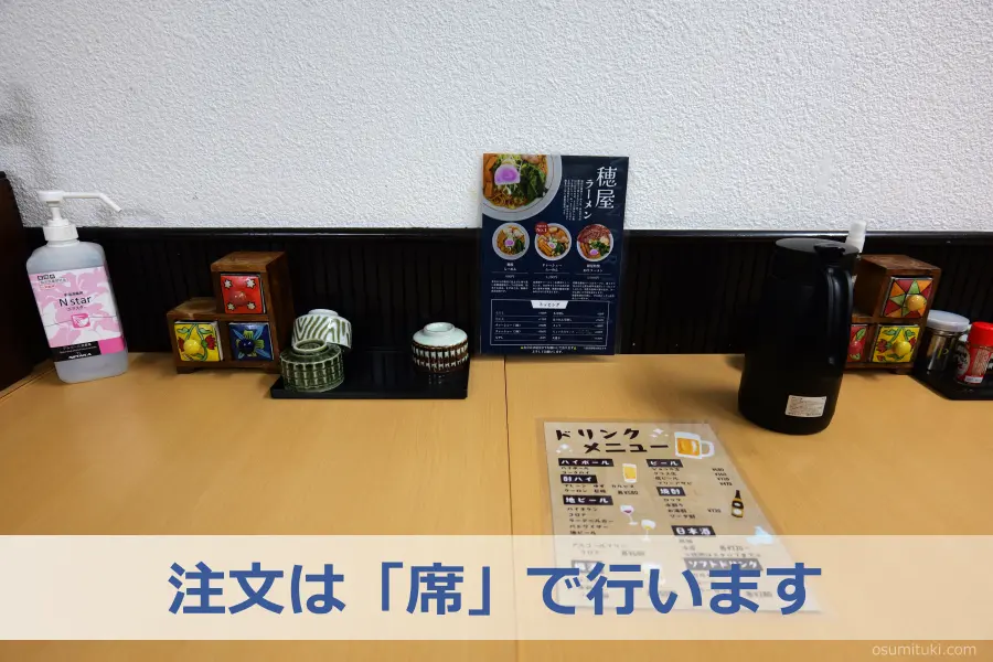 注文は席で店員さんに注文するようになっていました。私が京都の飲食店を食べ歩きした中ではこの注文方法が一般的です。