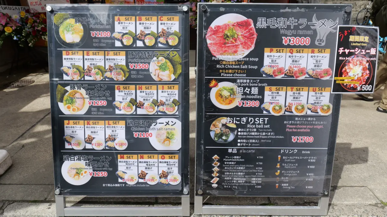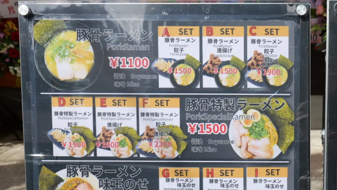 店内では「豚骨醤油ラーメン・鶏白湯塩ラーメン・黒毛和牛ラーメン・担々麺」を食べることができます。店名にもあるようにラーメンと米が食べられるお店なのですが、おにぎりはしばらくは提供しないでラーメン一本でやっていくとのことでした。