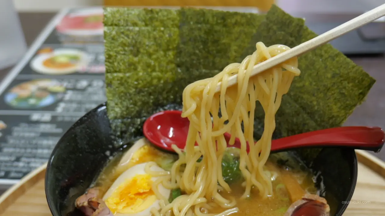 麺は家系ラーメンの平打ち麺とは違ってストレート太麺を使っています。旨味を感じる美味しい麺で家系のスープにもよく合っていました。