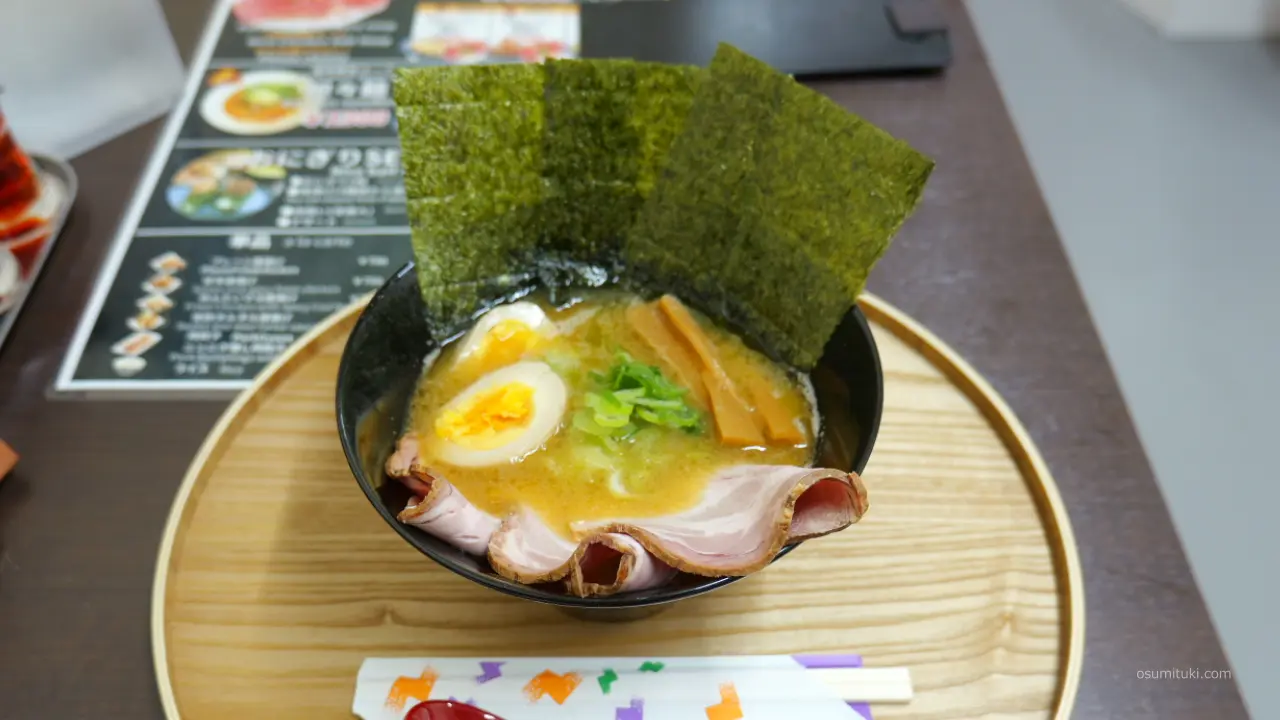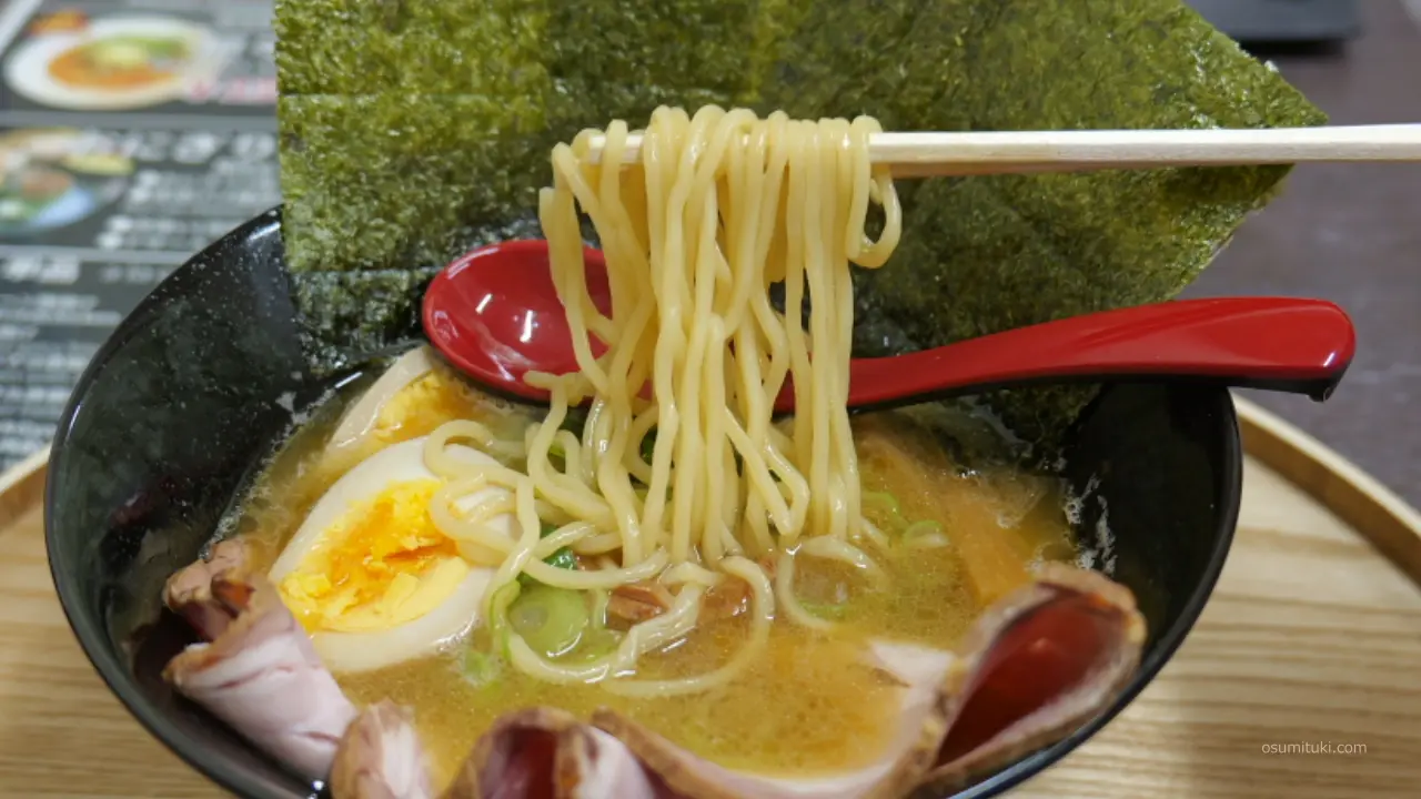 豚骨醤油ラーメンは見た目も味も家系ラーメンで、家系ラーメン店がない伏見稲荷大社周辺では貴重なお店になりそうです。
