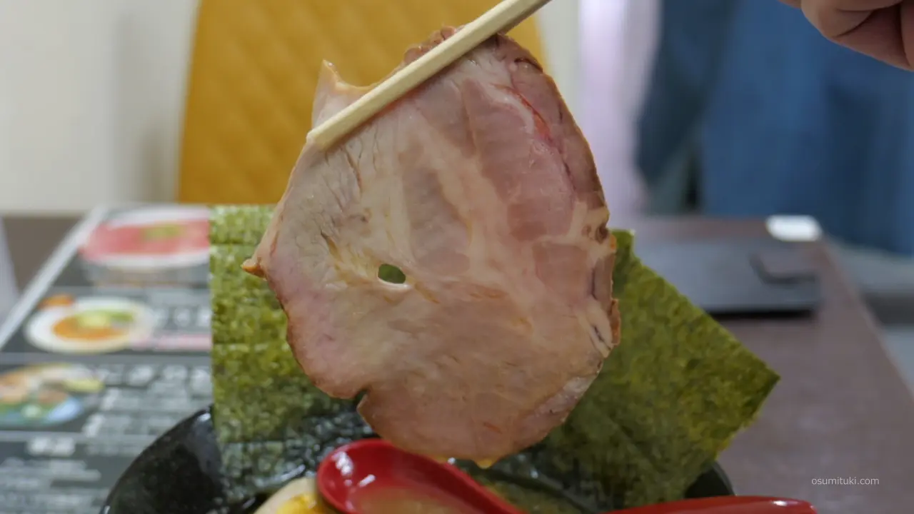 チャーシューは「豚ロース」で大判のものが3枚ほど入っていました。チャーシューも斎藤家のチャーシューに似ていて家系で使われている低温でじっくりと加熱したチャーシューになっていました。