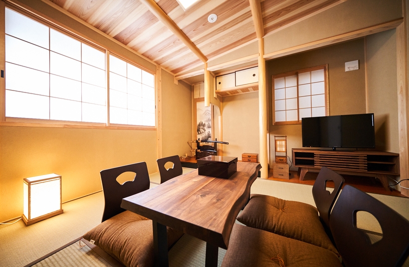 宿泊施設は時代劇のセットみたいになっていて、3室には「長唄の間、傘の間、髪結の間」といった名称が付いていました。