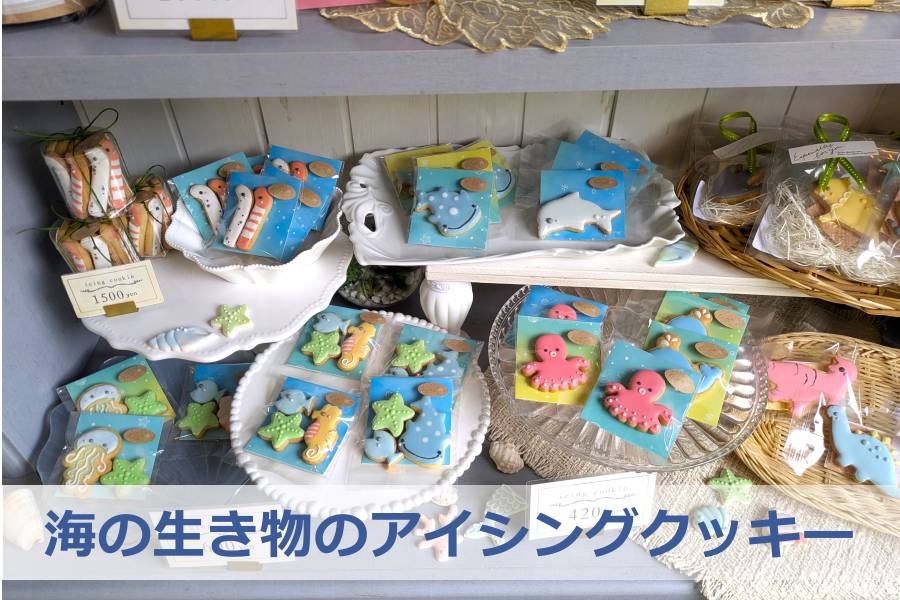 個人的にはこちらの海の生き物のアイシングクッキーが贈り物などでも喜ばれそうに思えました。台紙もきちんと入っていて海の色をイメージしてありました。